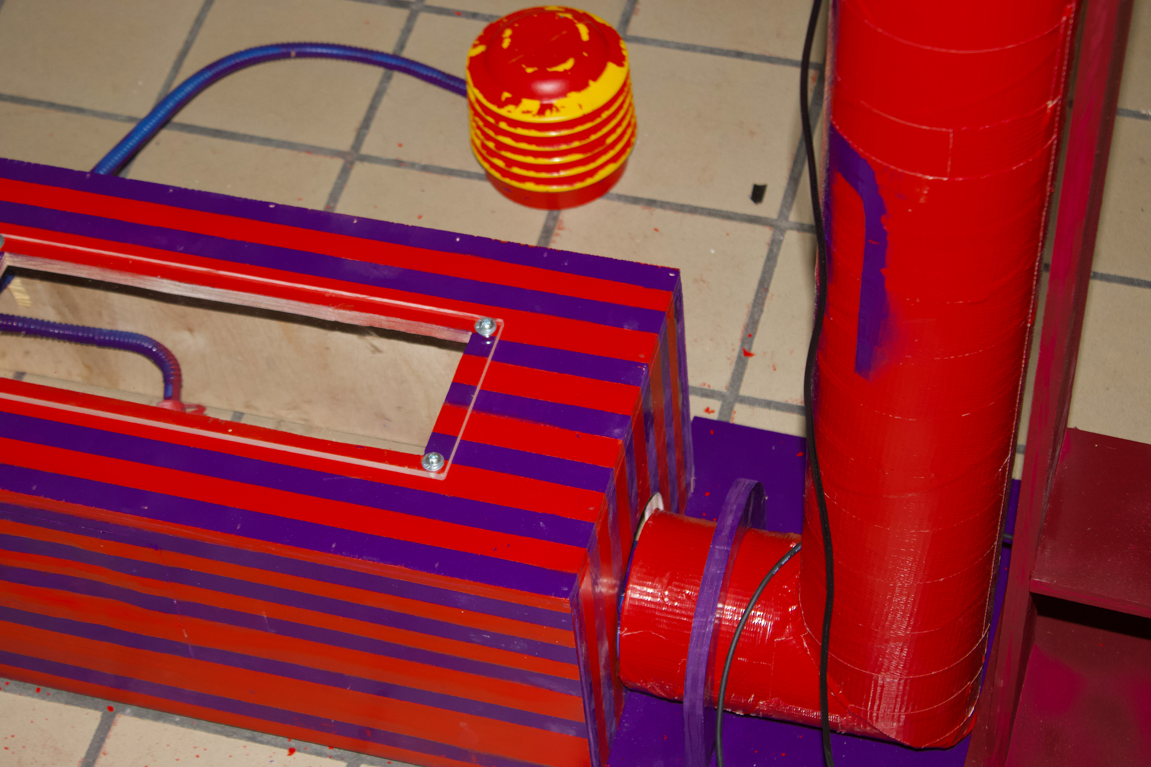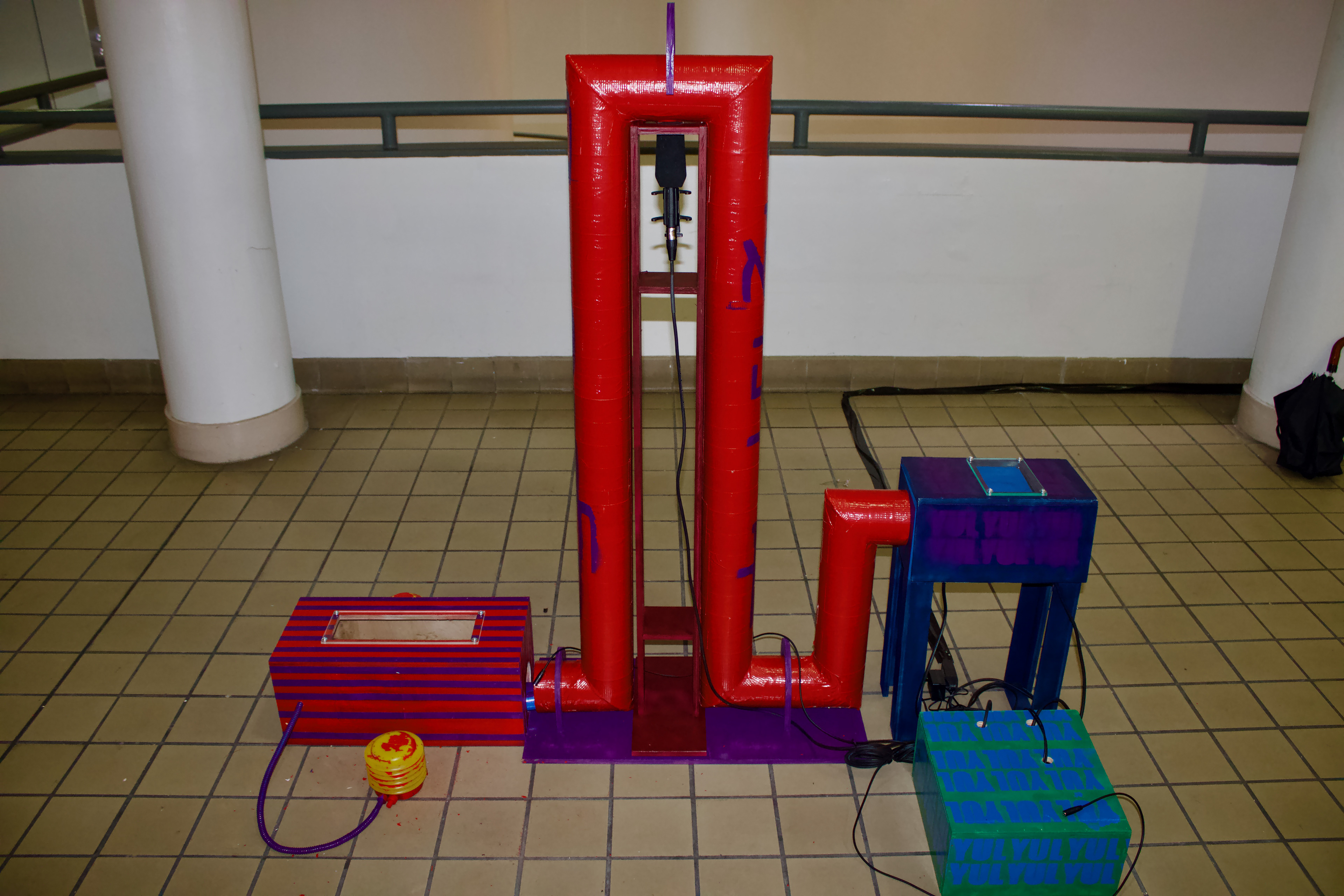 "YULONOMY" is an interactive sound sculpture that breaks the passive interaction relationship between viewer and artwork. The viewers and listeners are made into conductors and are invited to activate a fluctuating sound system. YULONOMY is sonically powered by a CD player containing manipulated field recording samples and membrane reeds. By pressing the accordion air pumps, which are connected to the membrane reeds, the sound travels through to the microphone, which is then transmitted to a mixer and ultimately routed to a pair of headphones and or amplified, allowing you to hear the effect in real time.