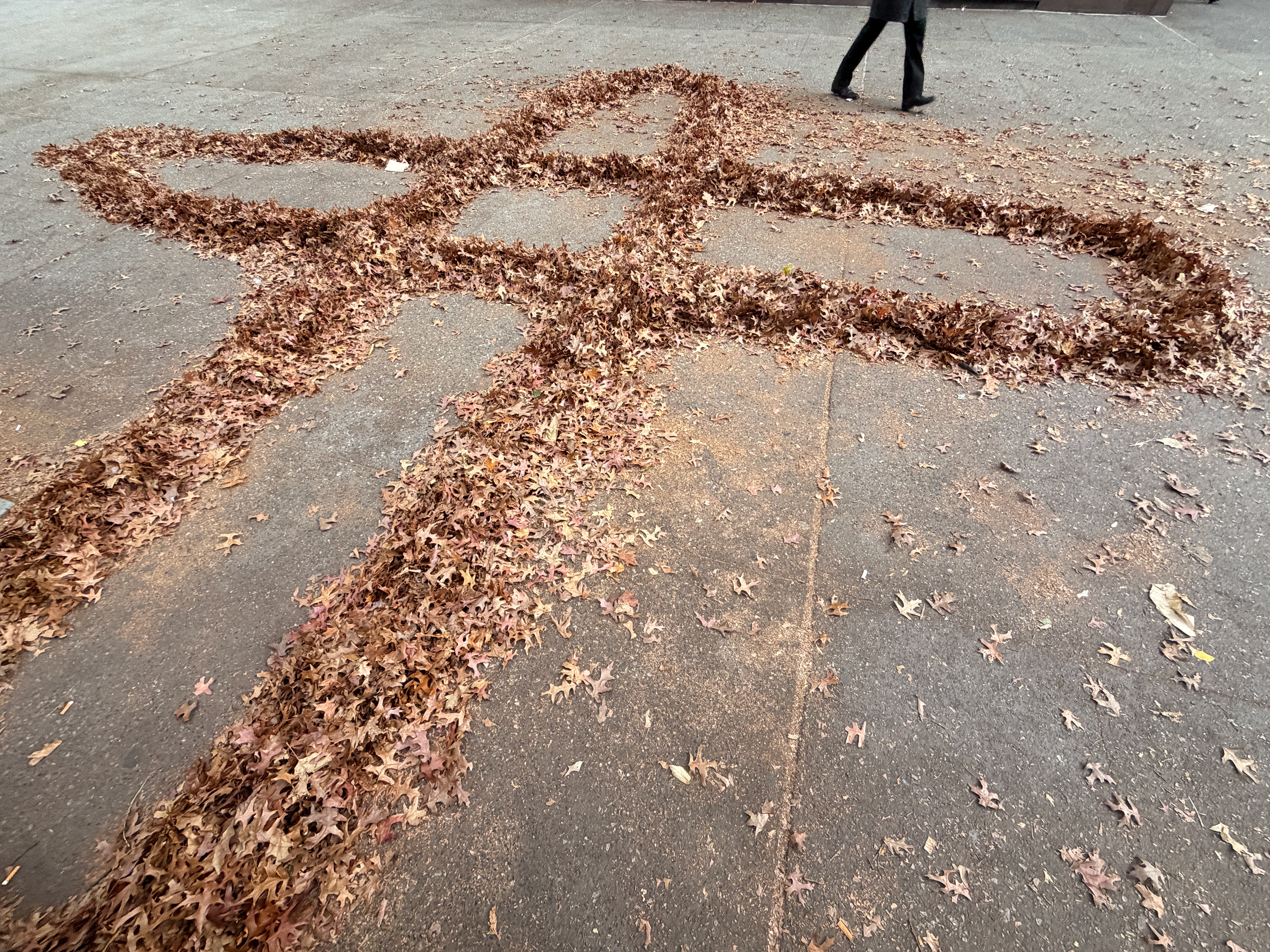 50 jumping jacks, 20 push-ups, 20 sit-ups -- Ink on paper 6,2 ft x 2 ft